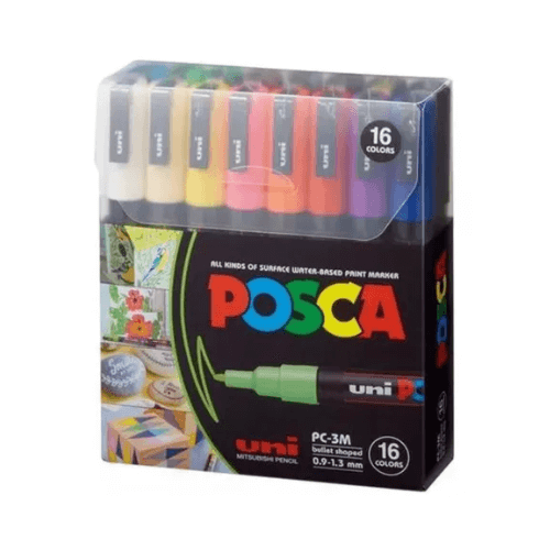 - Set de 16 marcadores Posca con colores surtidos.